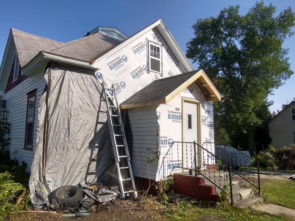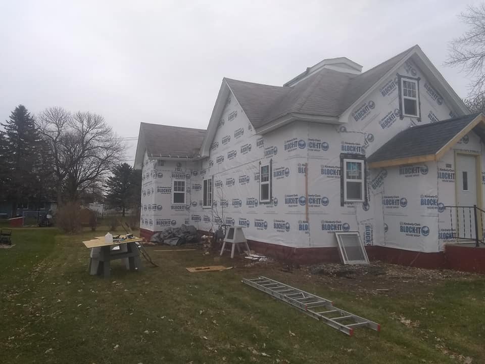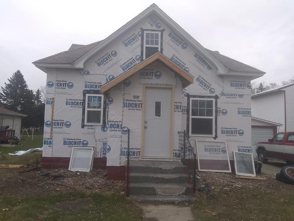 After graduating from the Building Trades Program at Lake Area Technical Institute in 2019, I have begun the complete remodel of my house. Since I am unable to afford to live somewhere else temporarily while I do this, I am attempting to do it in stages that allows me to still live in the house. I worked throughout the summer to get the exterior stripped, new windows and fresh OSB with the weather permitting (one of the wettest summers on record).
